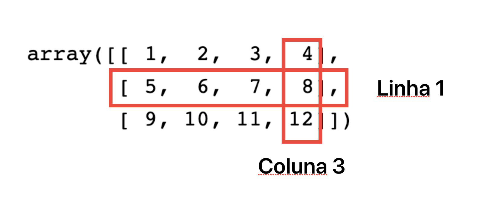 Nesse caso, se quisermos acessar o número 8, vamos ter de identificar o index desse número, no caso seria a[1, 3].