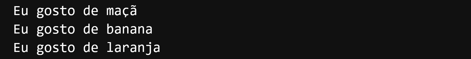 Para cada volta do for, a variável fruta recebe um item da lista. O bloco dentro do for roda pra cada item.