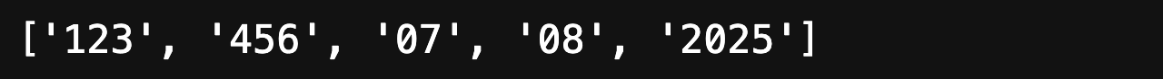 texto = "O pedido 123 custou R$ 456,00, entregue no dia 07/08/2025."