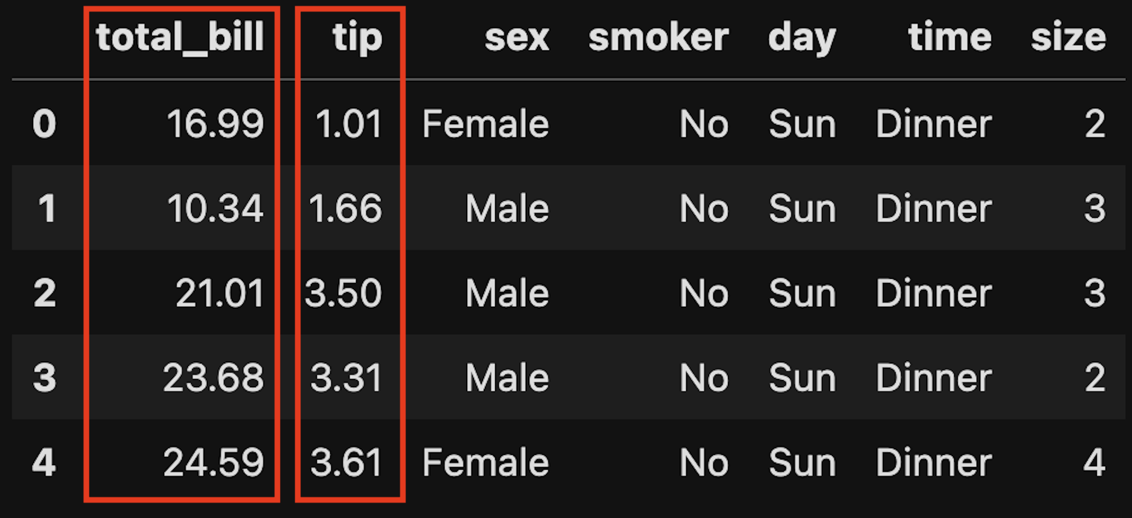 A minha hipótese é que o valor da gorjeta está diretamente relacionada ao valor da conta. Então vamos examinar o total_bill (o valor total da conta) e o tip (gorgeta).