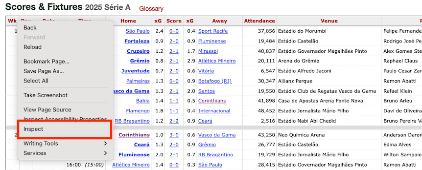 Quando descobri que podia puxar dados da internet para estudar e criar máquinas de aprendizagem, achei isso demais. Nesse post vamos começar a aprender como fazer um web scraping com dados de futebol.