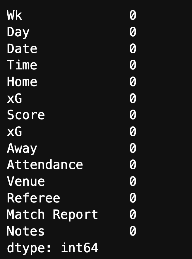 Se você ainda não observou, temos duas colunas com o mesmo nome xG. Isso acontece. Mas precisamos consertar isso antes que cause problemas em nossa análise.